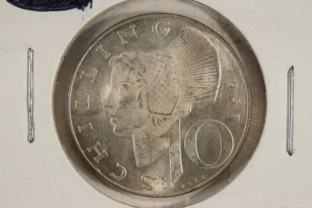 1957 AUSTRIA SILVER 10 SCHILLINGS UNC .1533 OZ.ASW