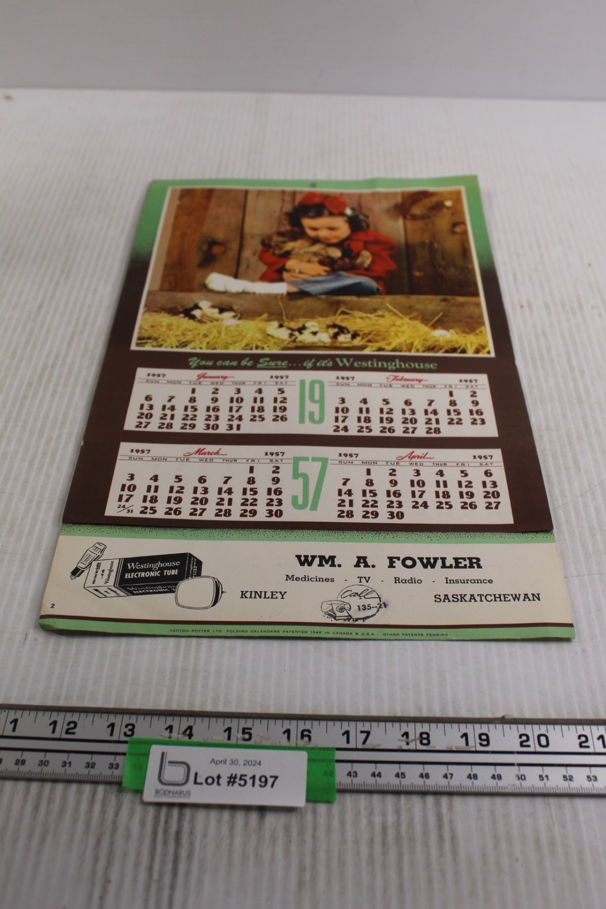 1957 Advertisement Calendar