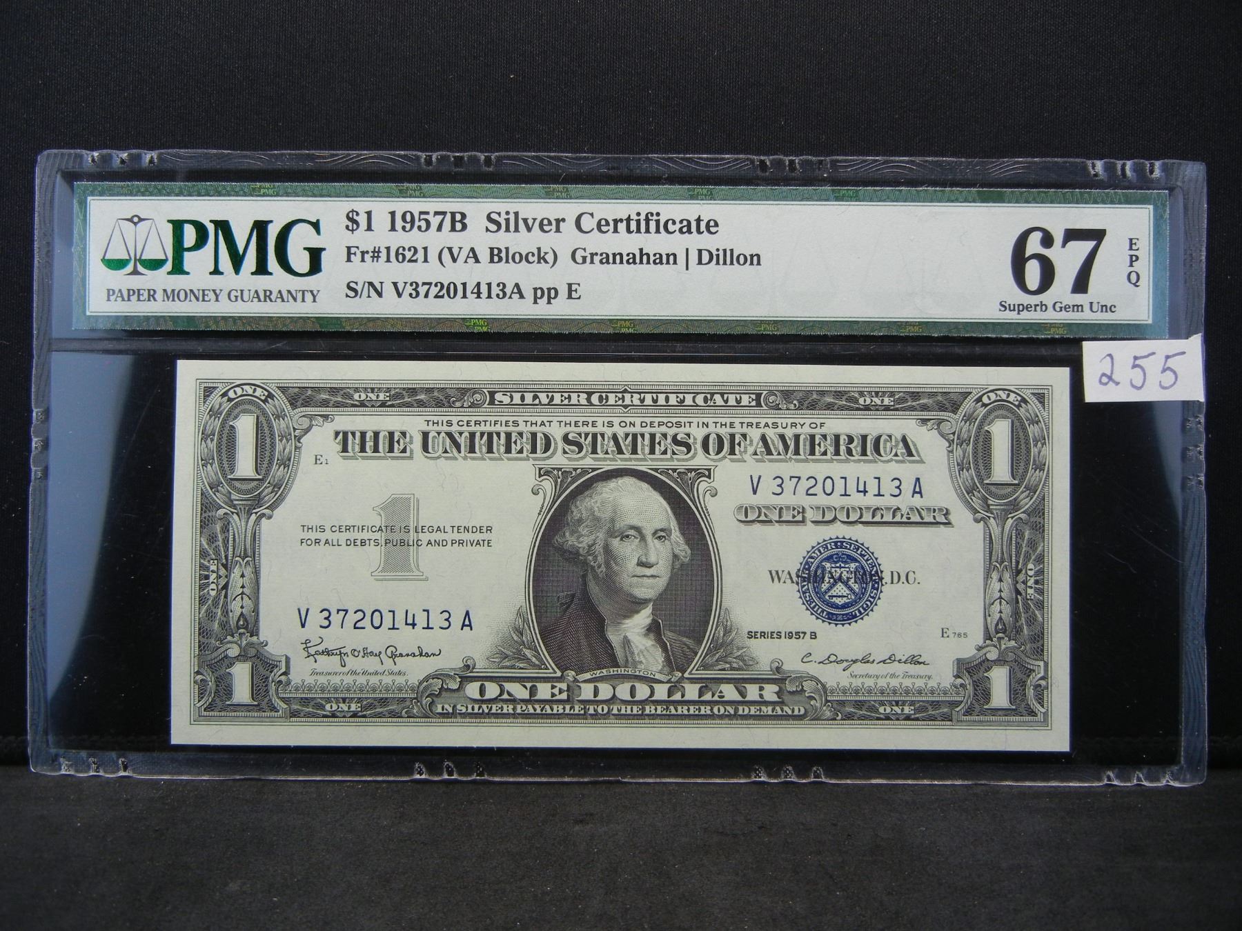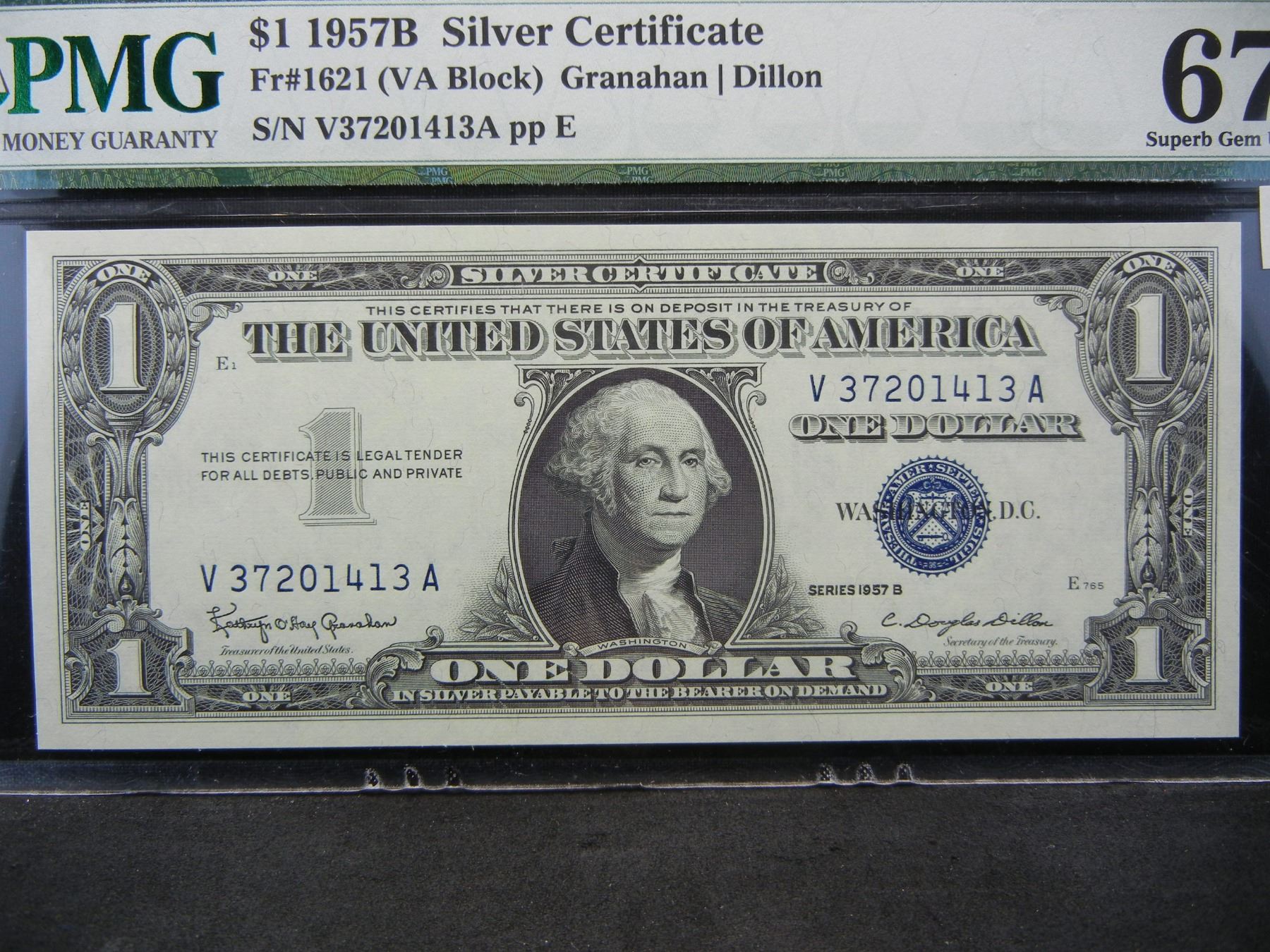 1957 B $1.00 Silver Certificate PMG 67 Superb Gem Unc Exceptional Paper Quality
