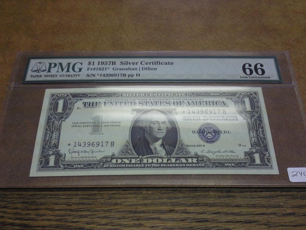 1957-B $1 SILVER CERTIFICATE PMG 66 GEM UNC