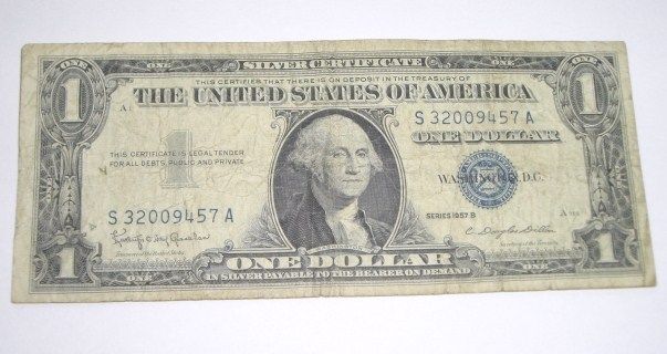 1957 B SERIES $1 SILVER CERTIFICATE BILL SERIAL # S32009457A *NICE BILL PLEASE LOOK AT PICTURE TO DETERMINE GRADE*!! ***Coin, Currency & All Items Listed in this auction - Grades, Conditions and Values are not Safe Deposit Coins LLC Responsibilty. Grades, Condition and Values are determined by Consigner(s) & Buyers ONLY