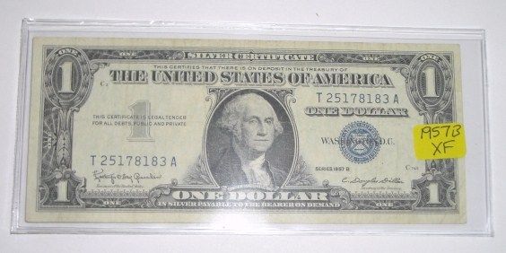 1957 B SERIES $1 SILVER CERTIFICATE BILL SERIAL # T25178183A *EXTREMELY RARE EXTRA FINE HIGH GRADE*!! ***Coin, Currency & All Items Listed in this auction - Grades, Conditions and Values are not Safe Deposit Coins LLC Responsibilty. Grades, Condition and Values are determined by Consigner(s) & Buyers ONLY