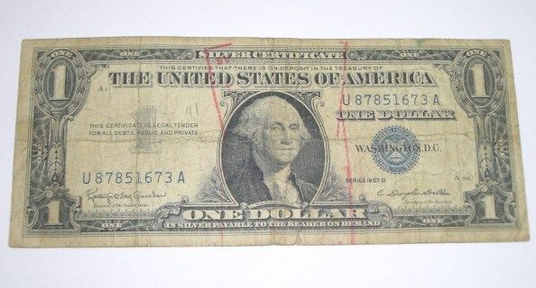 1957 B SERIES $1 SILVER CERTIFICATE BILL SERIAL # U87851673A *NICE BILL PLEASE LOOK AT PICTURE TO DETERMINE GRADE*!! ***Coin, Currency & All Items Listed in this auction - Grades, Conditions and Values are not Safe Deposit Coins LLC Responsibilty. Grades, Condition and Values are determined by Consigner(s) & Buyers ONLY