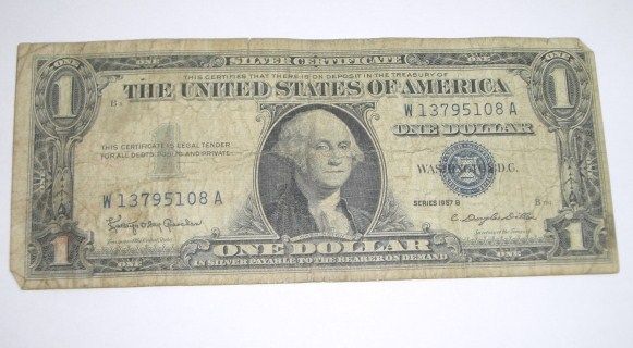 1957 B SERIES $1 SILVER CERTIFICATE BILL SERIAL # W13795108A *NICE BILL PLEASE LOOK AT PICTURE TO DETERMINE GRADE*!! ***Coin, Currency & All Items Listed in this auction - Grades, Conditions and Values are not Safe Deposit Coins LLC Responsibilty. Grades, Condition and Values are determined by Consigner(s) & Buyers ONLY
