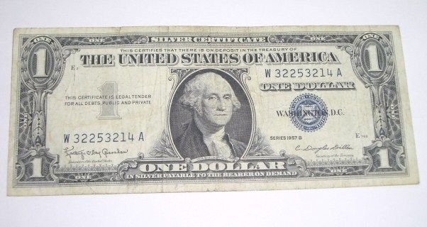 1957 B SERIES $1 SILVER CERTIFICATE BILL SERIAL # W32253214A *NICE BILL PLEASE LOOK AT PICTURE TO DETERMINE GRADE*!! ***Coin, Currency & All Items Listed in this auction - Grades, Conditions and Values are not Safe Deposit Coins LLC Responsibilty. Grades, Condition and Values are determined by Consigner(s) & Buyers ONLY