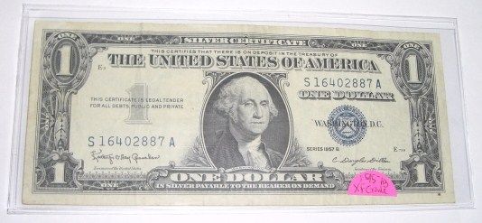 1957 B SERIES $1 SILVER CERTIFICATE SERIAL # S16402887A *RARE EXTRA FINE HIGH GRADE*!! ***Coin, Currency & All Items Listed in this auction - Grades, Conditions and Values are not Safe Deposit Coins LLC Responsibilty. Grades, Condition and Values are determined by Consigner(s) & Buyers ONLY