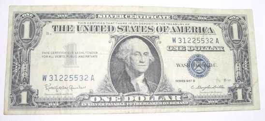 1957 B SERIES $1 SILVER CERTIFICATE SERIAL # W31225532A *PLEASE LOOK AT PICTURE TO DETERMINE GRADE*!! ***Coin, Currency & All Items Listed in this auction - Grades, Conditions and Values are not Safe Deposit Coins LLC Responsibilty. Grades, Condition and Values are determined by Consigner(s) & Buyers ONLY