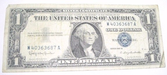 1957 B SERIES $1 SILVER CERTIFICATE SERIAL # W40363687A *PLEASE LOOK AT PICTURE TO DETERMINE GRADE*!! ***Coin, Currency & All Items Listed in this auction - Grades, Conditions and Values are not Safe Deposit Coins LLC Responsibilty. Grades, Condition and Values are determined by Consigner(s) & Buyers ONLY