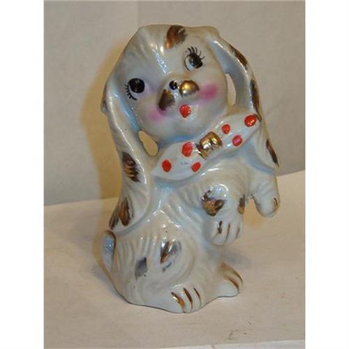 THIS IS A DOG WITH BIG EARS AND GOLD TRIM FIGURINE MADE IN JAPAN AROUND 1957. ALL THE DOGS THAT I PUT ON HERE ARE FROM MY OWN DOG COLLECTION. THIS DOG WAS ADDED TO MY COLLECTION ON AUGUST 8, 1957. I HAVE OVER 300 DOGS THAT I RECEIVED FOR MY COLLECTION FROM 1954 TO 1964 THAT WILL BE PUT UP FOR SALE OR AUCTION. I HAVE THE EXACT DATE THAT I RECEIVED EACH DOG. SOME OF THE DOGS ARE OLDER THAN THE DATE THAT I RECEIVED THEM. I NOW HAVE OVER 1200 DOGS ( OLD AND NEW ) IN MY COLLECTION AND THEY ARE ALL UP FOR SALE OR AUCTION. I GUARANTY THAT MY DOGS ARE THE REAL (DOG) DEAL. MY DOGS ARE THE ORIGINAL OLD DOGS AND NOT THE FAKES AND REPLICAS. This Dog is in Excellent condition for its age. There are no chips, cracks or repairs on this Dog. I do not see age crazing on this Dog. You can see most of this in my pictures. I HAVE OVER 800 POSITIVE FEEDBACKS FOR MY EBAY STORE. Thanks for Looking !!!