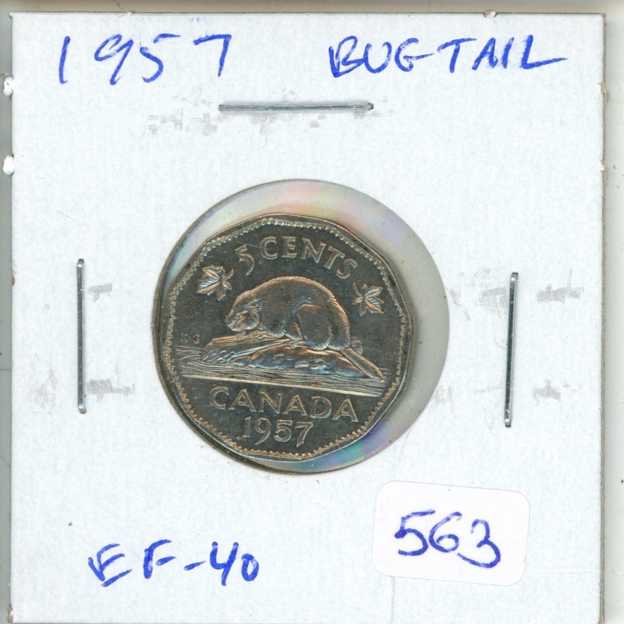 1957 Bug Tail 5 Cents. There’s a small Die Chip on the end of the beaver’s tail that looks like a Bug. EF-40.