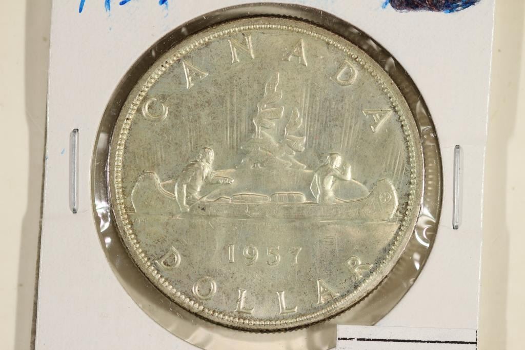 1957 CANADA SILVER DOLLAR FULL WATER LINES UNC