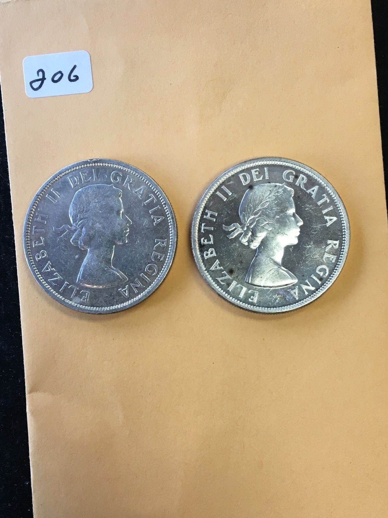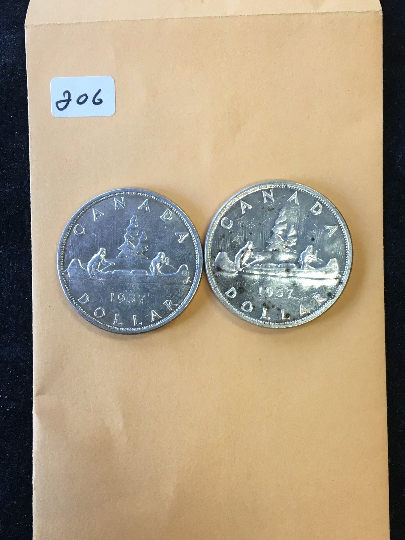 NICE LOT OF 2 CANADA SILVER DOLLARS! ONE IS A FULL WATER LINE AND THE OTHER IS ONE WATERLINE!