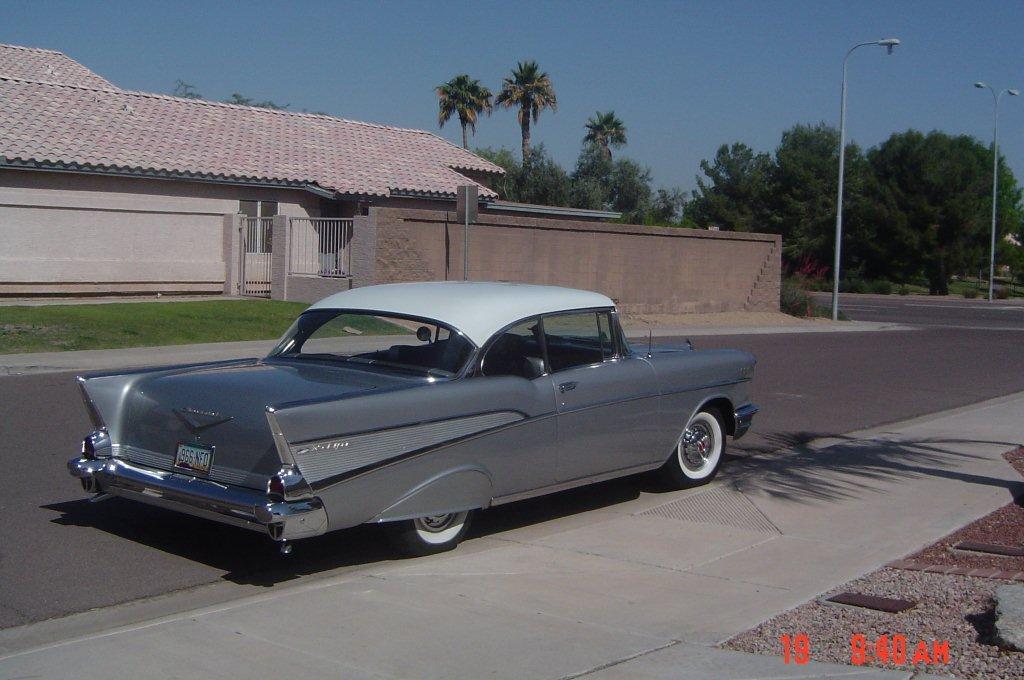 55000 MILES. ORIGINAL INTERIOR. RARE COLOR COMBO: INDIA IVORY AND INCA SILVER. COKER RADIALS FENDER SKIRTS. OWNED 6 YEARS-ARIZONA. 20 YEARS IN WEATHERIZED STORAGE IN MONTE VISTA, CO. 283 V-8 POWER PAK AUTO. EXCELLENT SHAPE. RUNS SMOOTH. DRIVE ANYWHERE! APPRECIATION APPRECIATION APPRECIATION! 283, POWER PACK AUTOMATIC TRANSMISSION