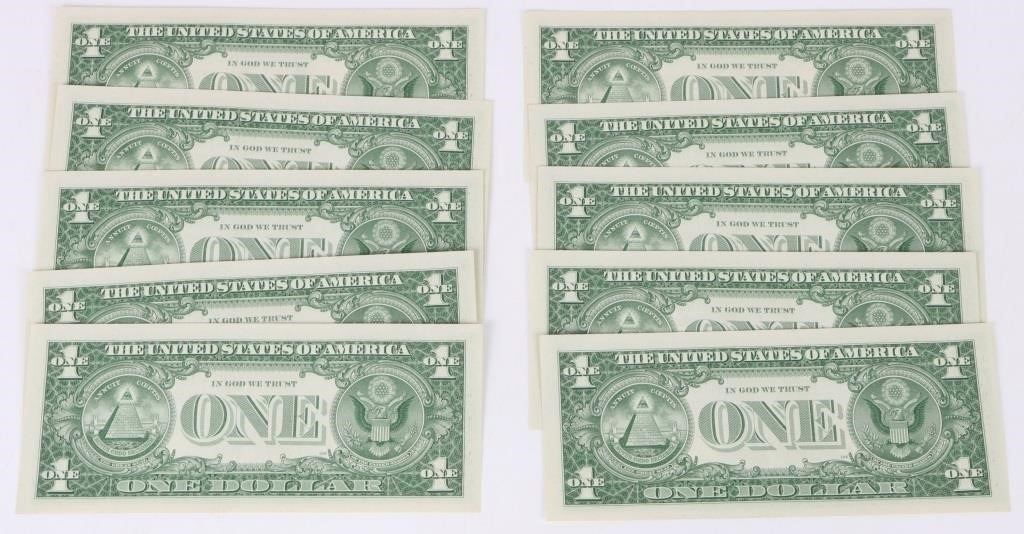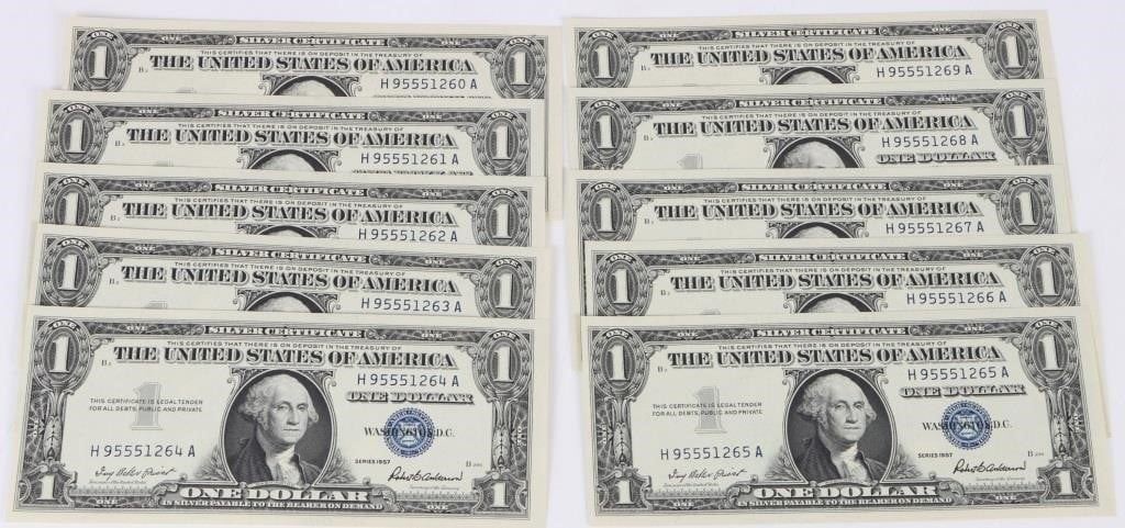 1957 consecutive numbers $10 crisp uncirculated bills - lot of ten. All notes are in sequential number order from H95551260A to H95551269A.