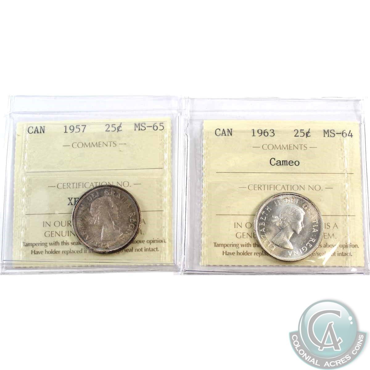 1957 Canada 25-cent ICCS Certified MS-65 & 1963 MS-64 Cameo. 2pcs