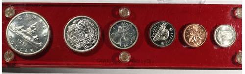 Choice original set in red capital plastic holder. Fully brilliant coins with a hint of tone on the obverse of the 10 cent & 25 cent. Nice red cent (no return).