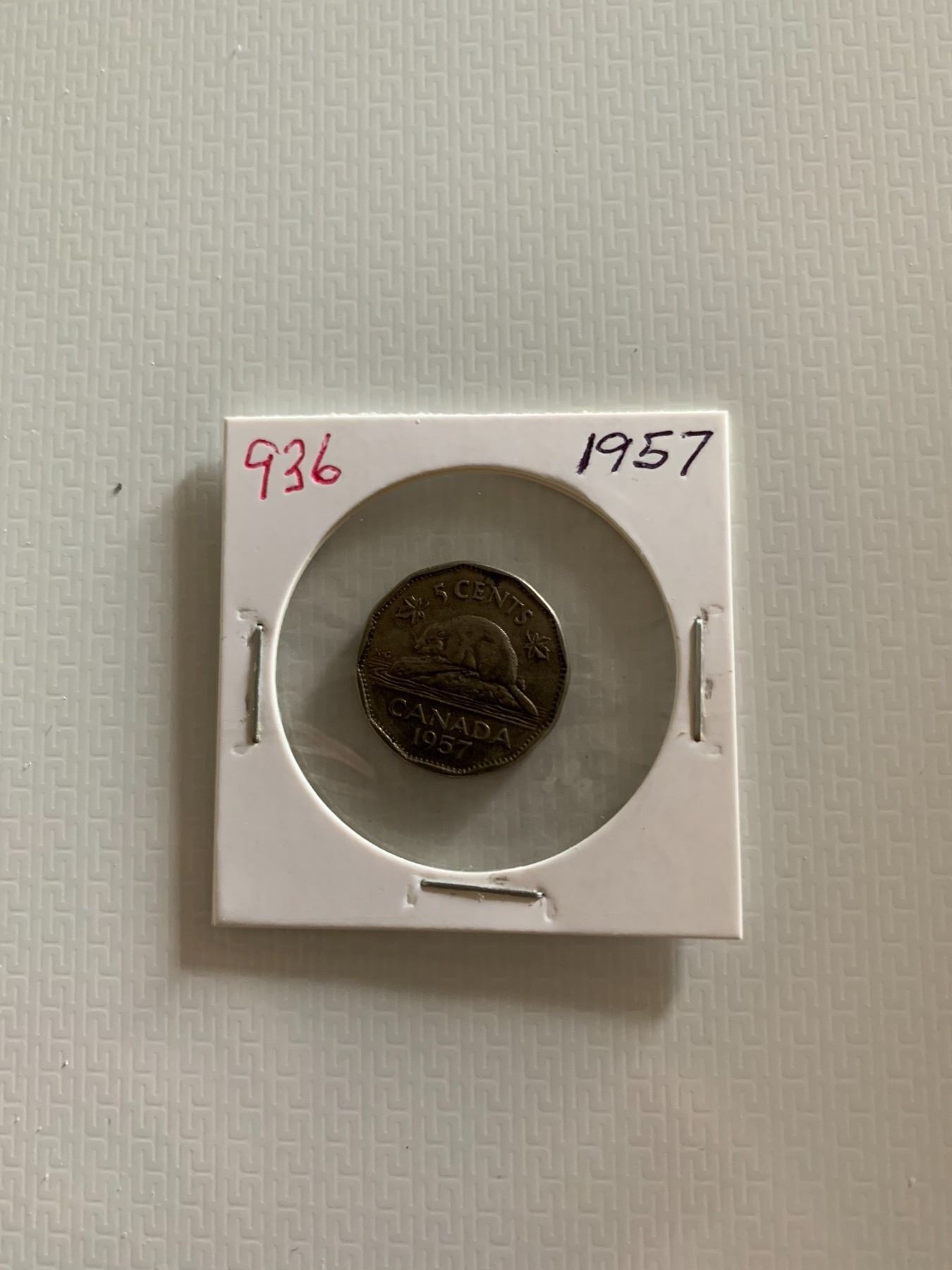 1957 Canadian 5 Cents Coin.