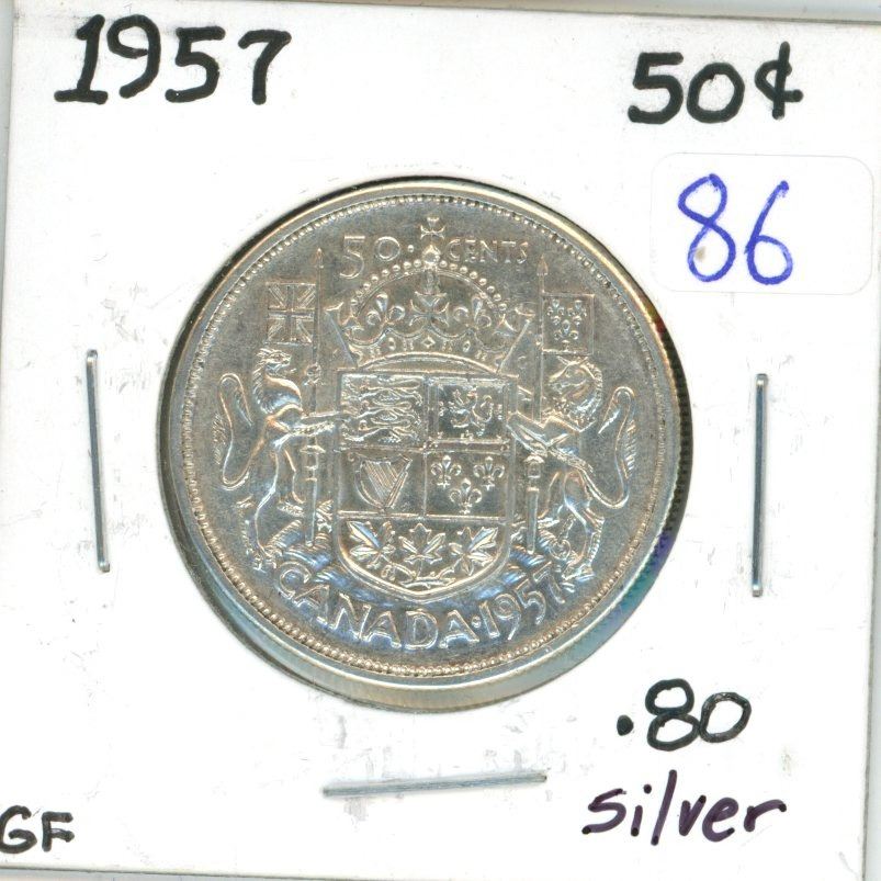1957 Canadian silver 50 cent coin
