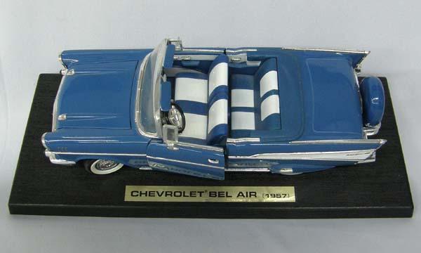 1957 Chevy Bel Air Collector Car, measures approx. 4'' x 13.25'' includes base, hood lifts up. SHI $25.