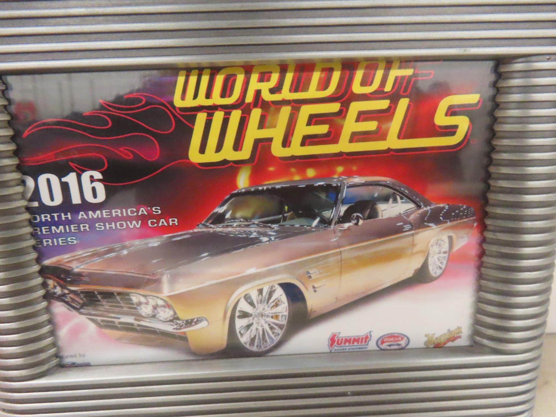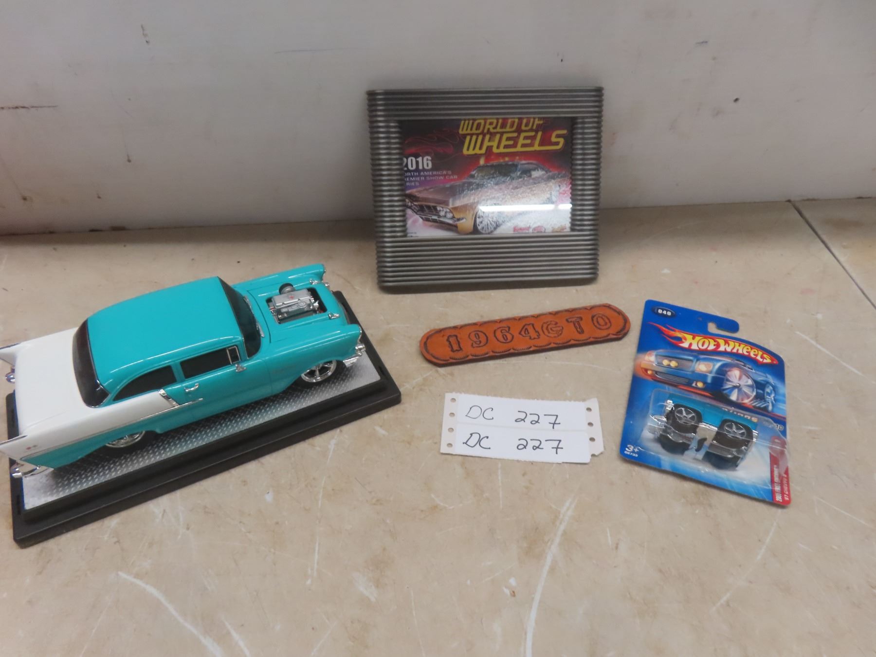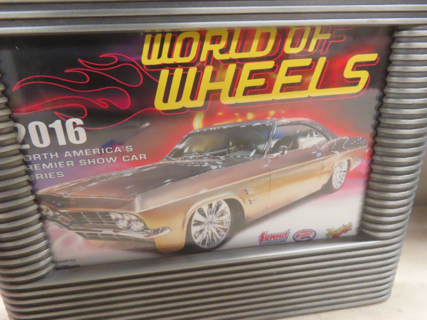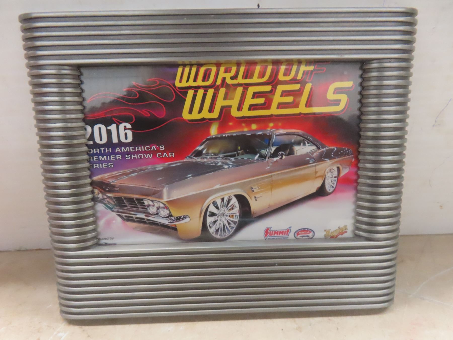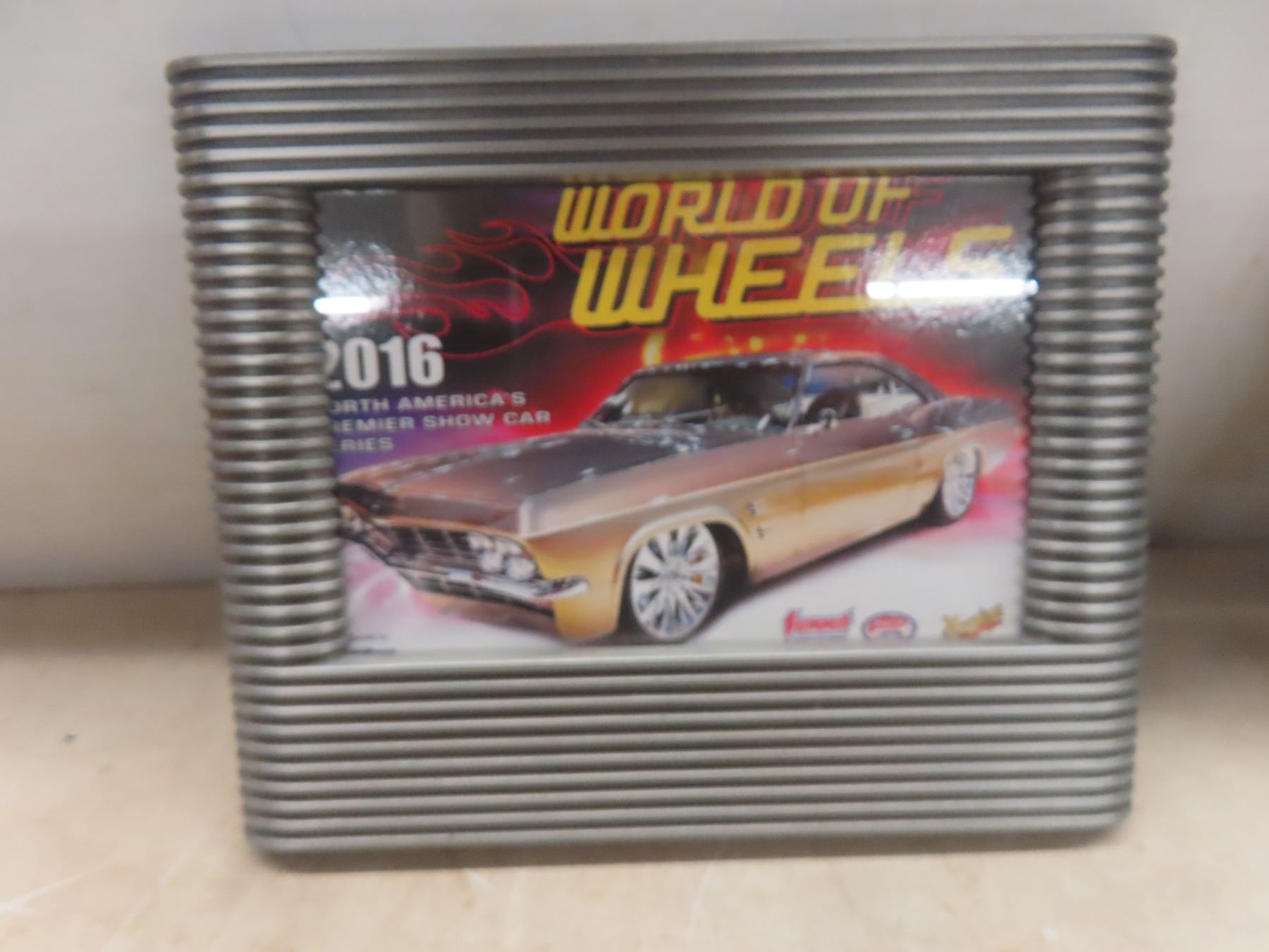 1957 ChevyDie Cast, 67 Chevy Hot Wheels And 1964 GTO Framed World Of Wheels 5 1/2" x 7 1/2".