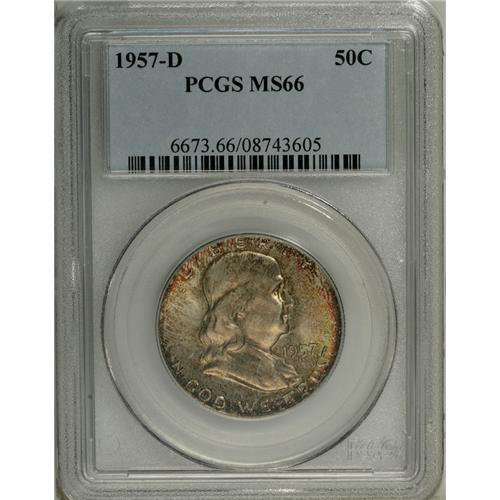 1957-D 50C MS66 PCGS. Boldly struck, if a trifle weak