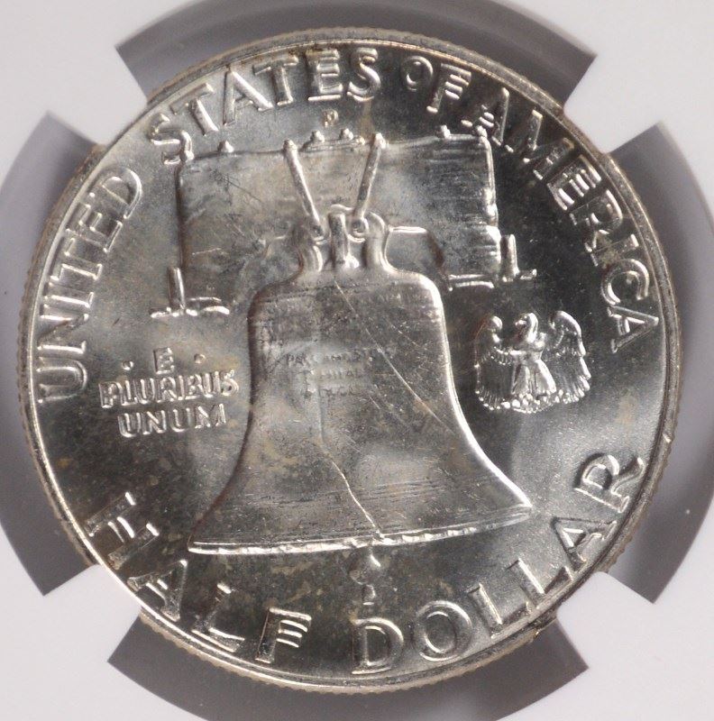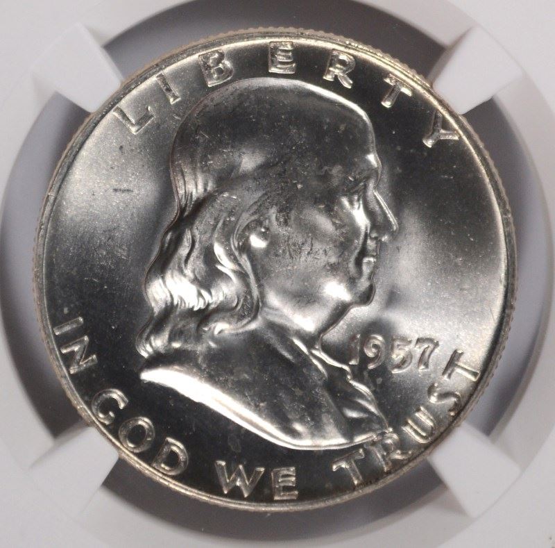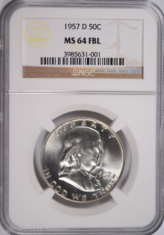 1957-D FRANKLIN HALF DOLLAR, NGC MS-64 FBL