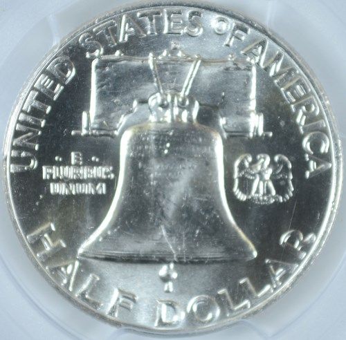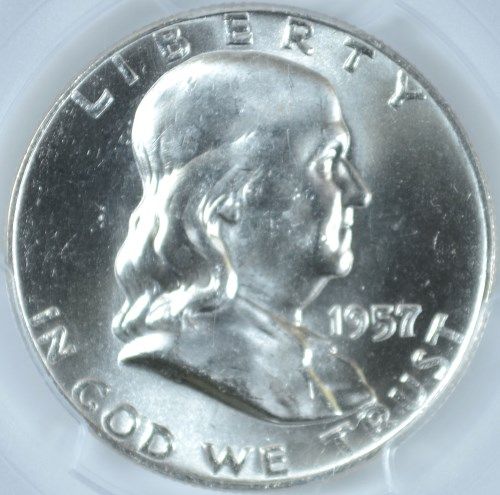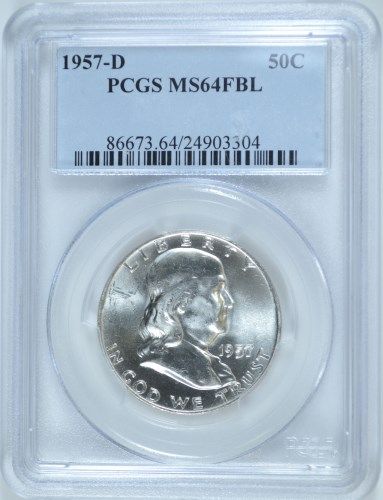 1957-D FRANKLIN HALF DOLLAR, PCGS MS-64 FBL