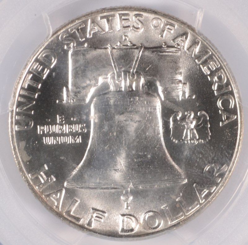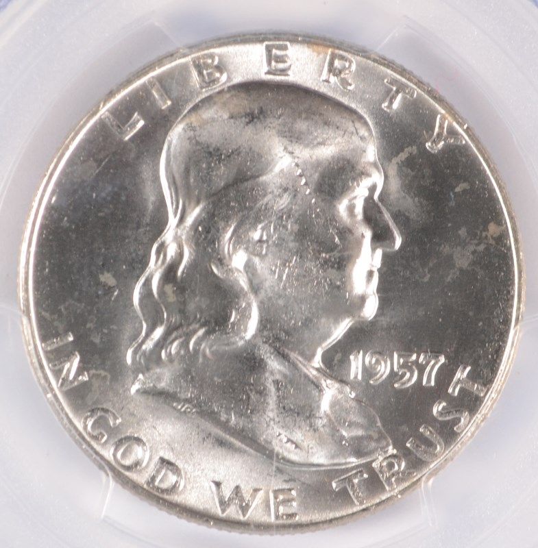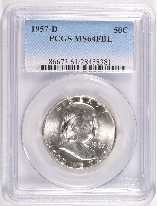 1957-D FRANKLIN HALF DOLLAR, PCGS MS_65 FBL