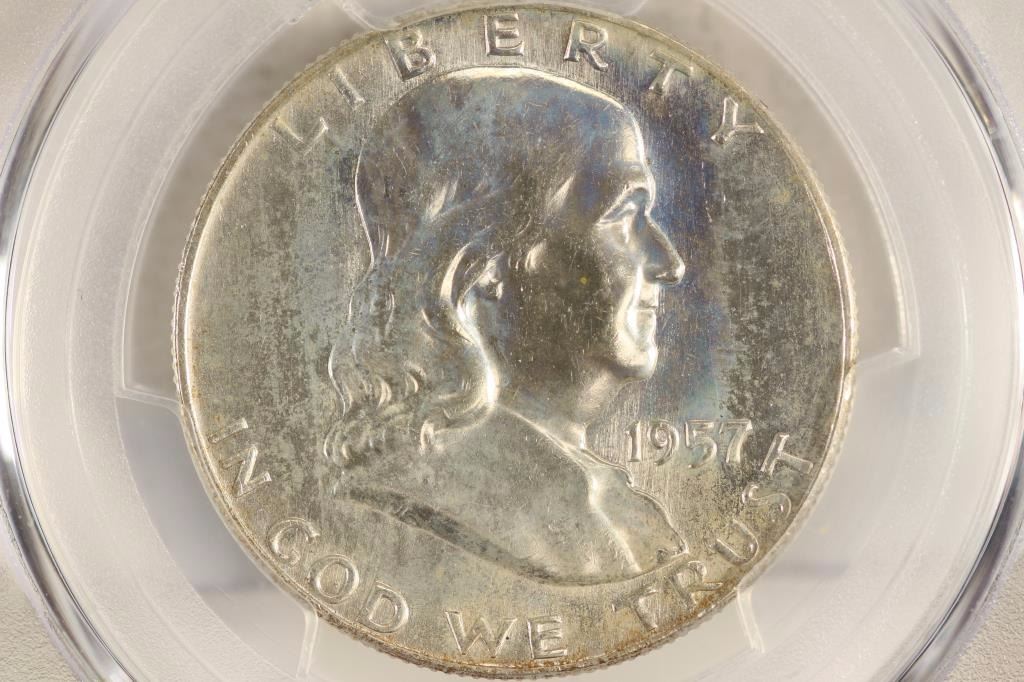 1957-D FRANKLIN HALF DOLLAR PCGS UNC DETAILS