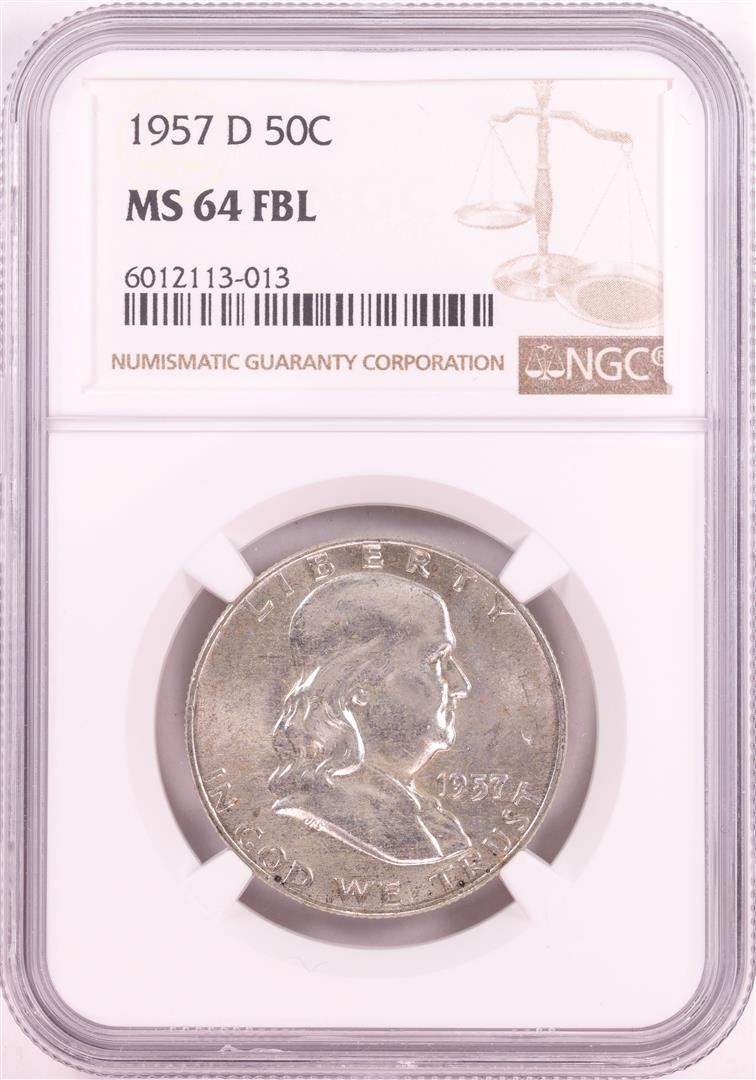 One 1957-D Franklin Half Dollar Coin NGC MS64FBL. NGC Certified.