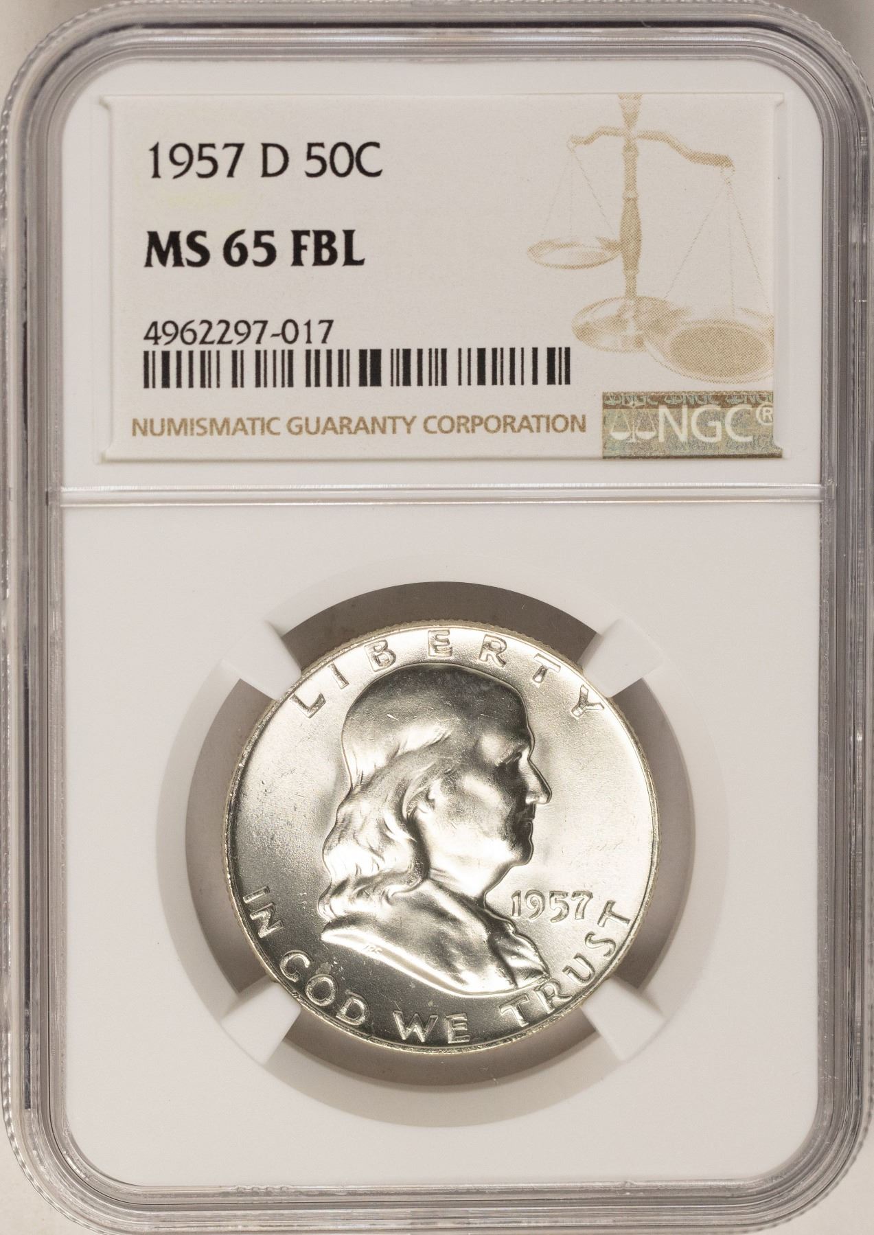 One 1957-D Franklin Half Dollar Coin NGC MS65FBL.
