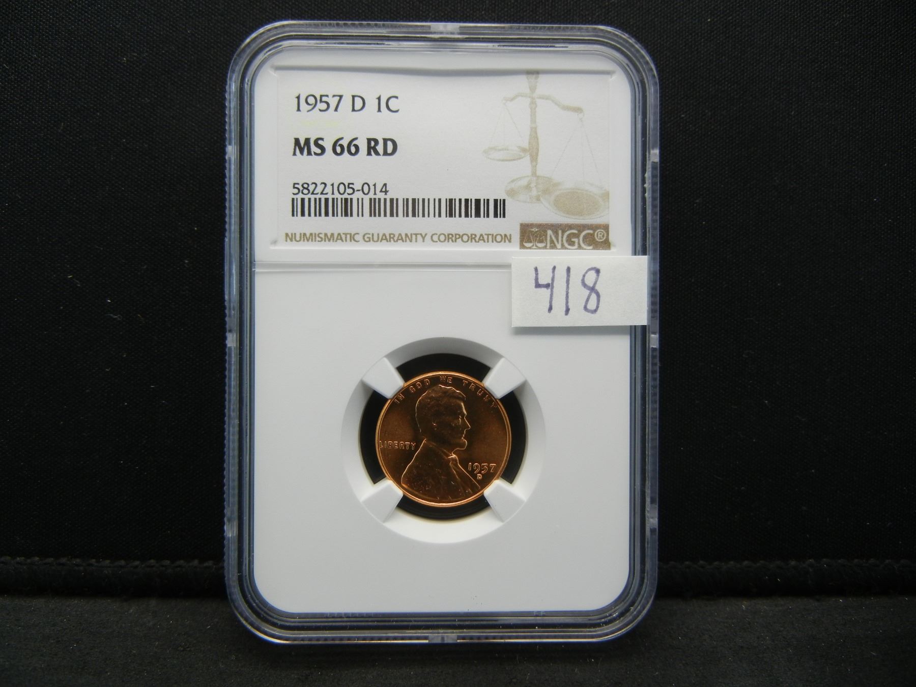 1957 D Lincoln Cent NGC MS66 RED
