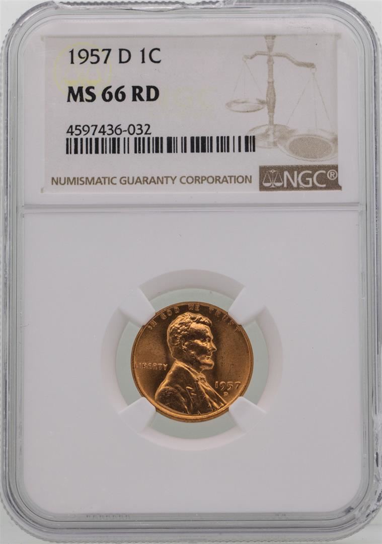 One 1957-D Lincoln Wheat Penny Coin NGC MS66RD. NGC Certified.