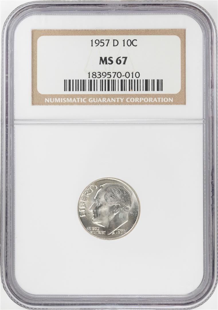 One 1957-D Roosevelt Dime Coin NGC MS67. NGC Certified.