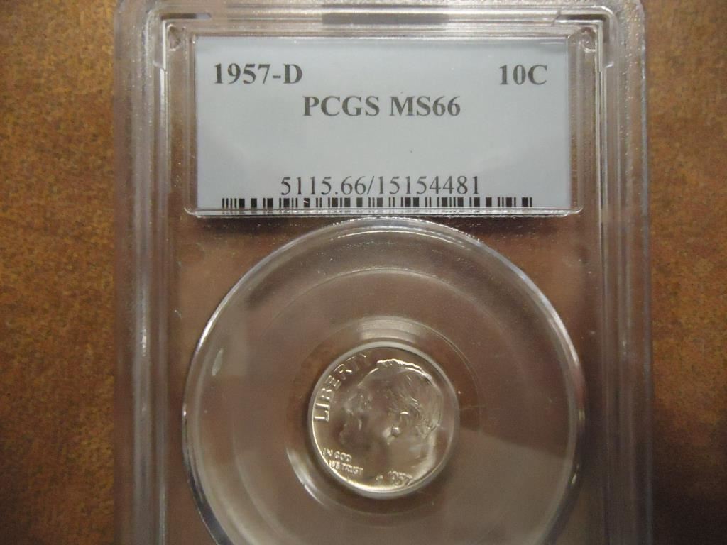 1957-D SILVER ROOSEVELT DIME PCGS MS66