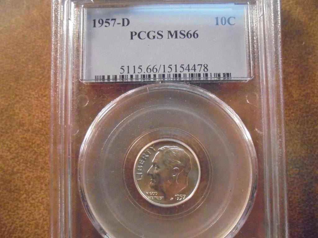 1957-D SILVER ROOSEVELT DIME PCGS MS66