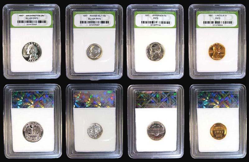 1957 FOUR COIN SILVER PROOF SET. INB CERTIFIED - HIGH GRADE - You may not receive the exact coin shown, but you will receive one of the same or better quality.