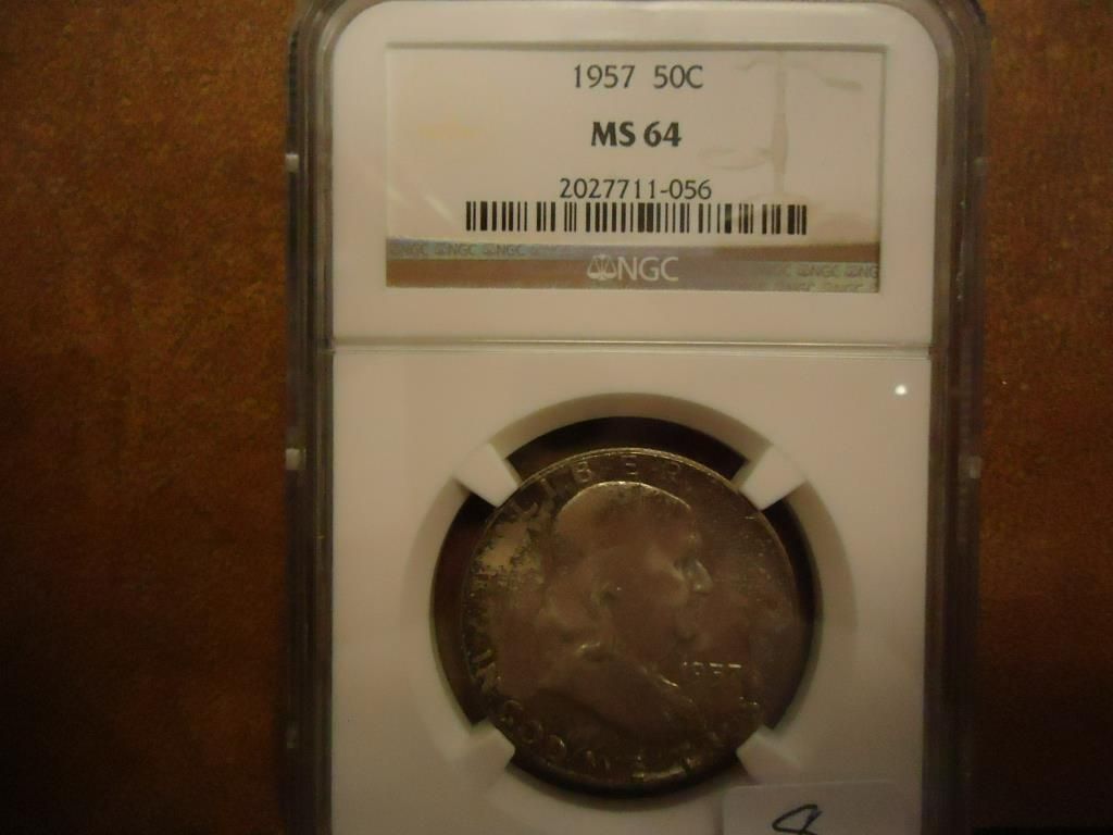 1957 FRANKLIN HALF DOLLAR NGC MS64 TONED