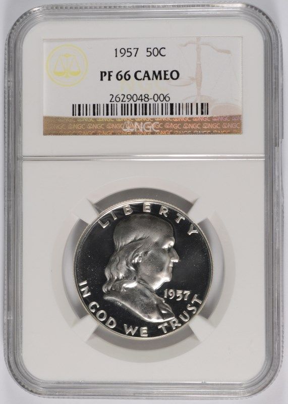 1957 FRANKLIN HALF DOLLAR, NGC PROOF-66 CAMEO! BEAUTIFUL!