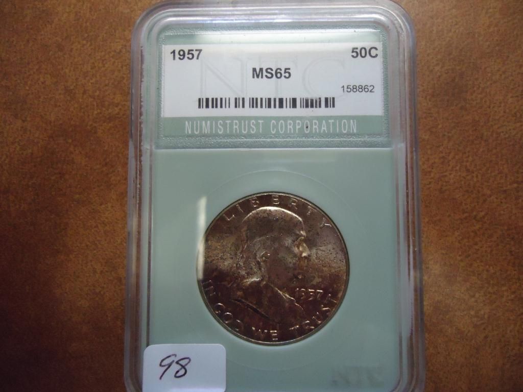 1957 FRANKLIN HALF DOLLAR NTC MS65 (TONED)