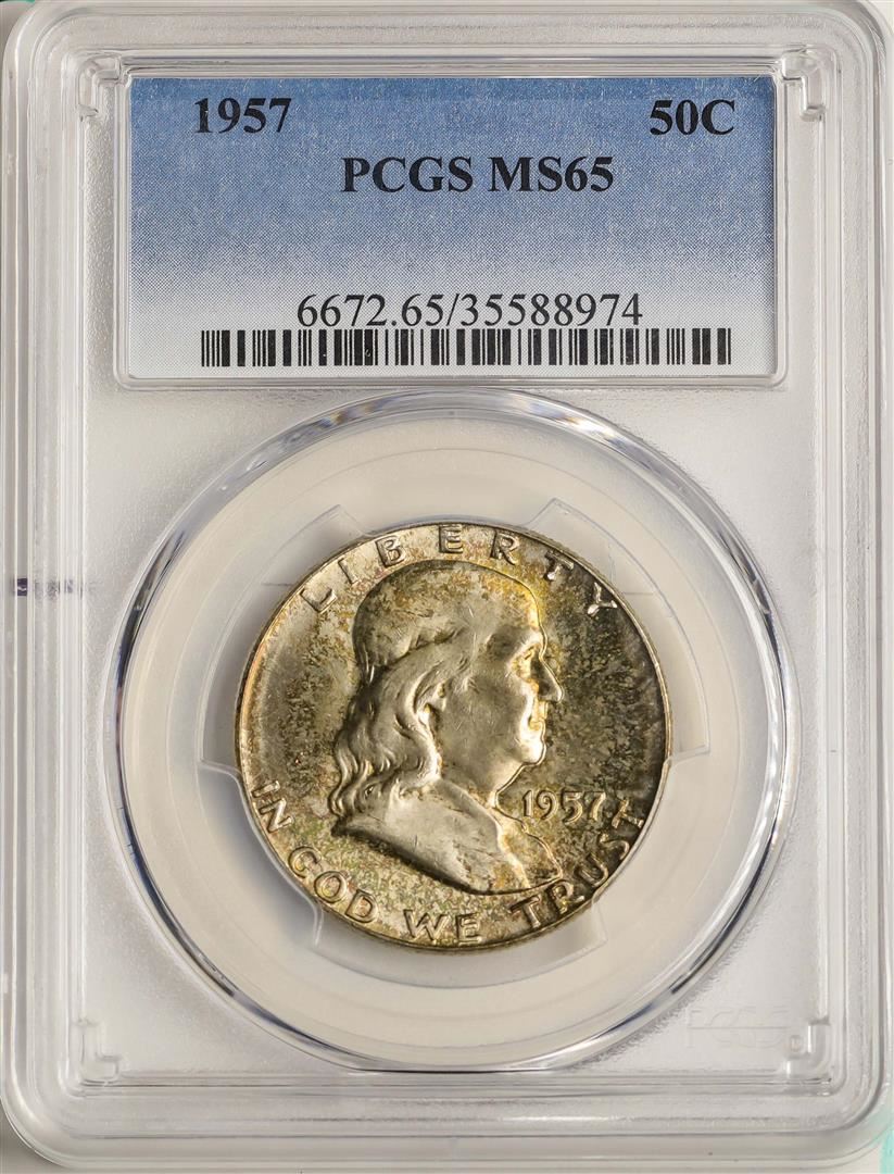 One 1957 Franklin Half Dollar Coin PCGS MS65. PCGS Graded.