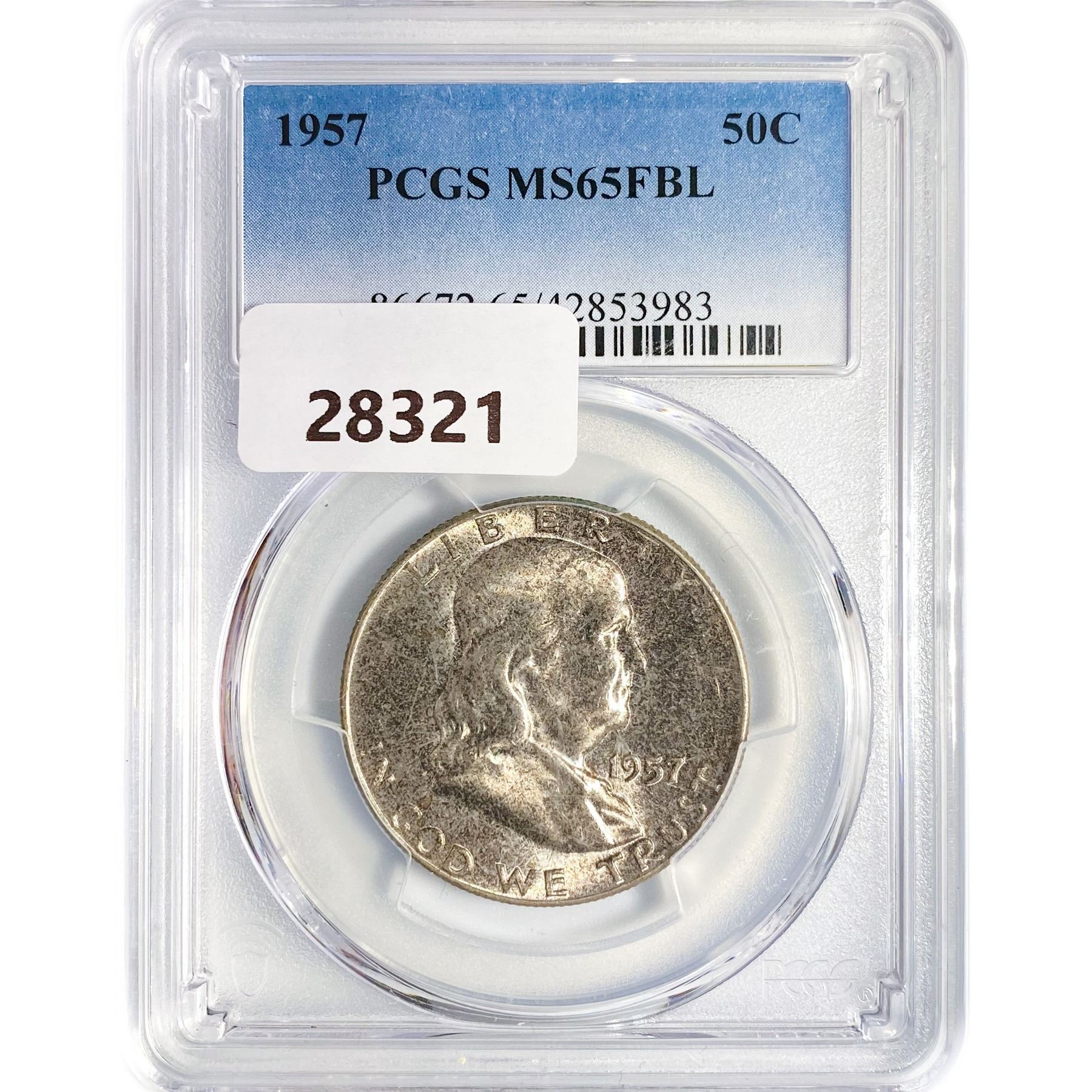 1957 Franklin Half Dollar PCGS MS65 FBL
