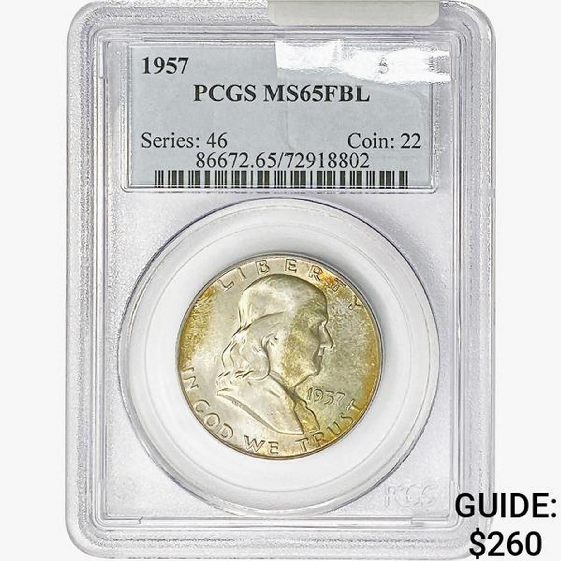 1957 Franklin Half Dollar PCGS MS65 FBL