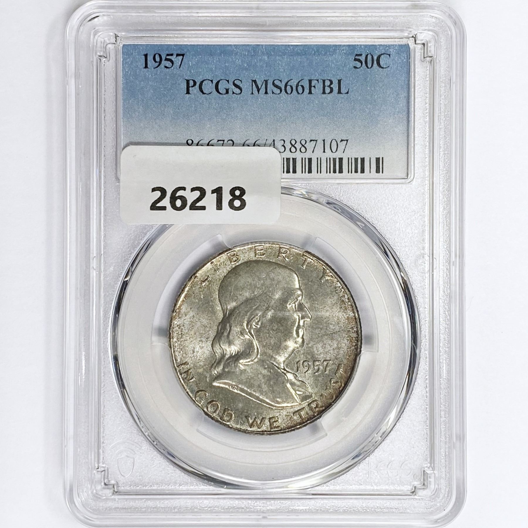 1957 Franklin Half Dollar PCGS MS66 FBL