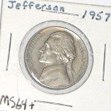 1957 JEFFERSON NICKEL *RARE MS-64+ HIGH GRADE-NICE EARLY COIN!! NICKEL CAME OUT OF SAFE!! ***Coin, Currency & All Items Listed in this auction - Grades, Conditions and Values are not Safe Deposit Coins LLC Responsibilty. Grades, Condition and Values are determined by Consigner(s) & Buyers ONLY