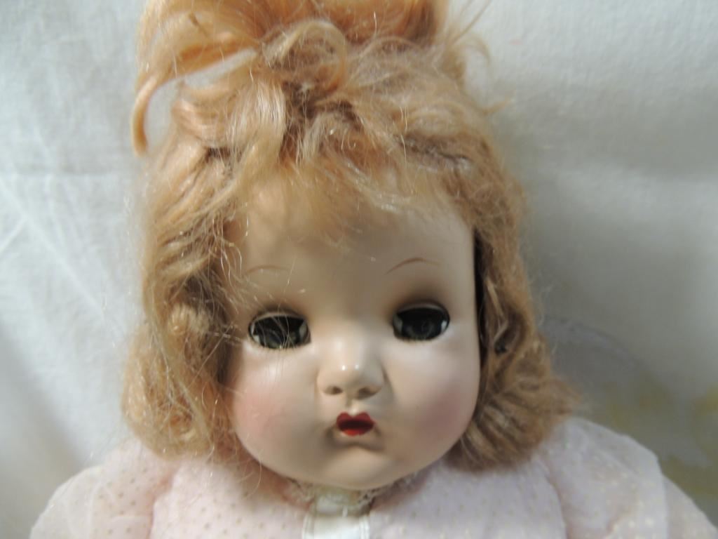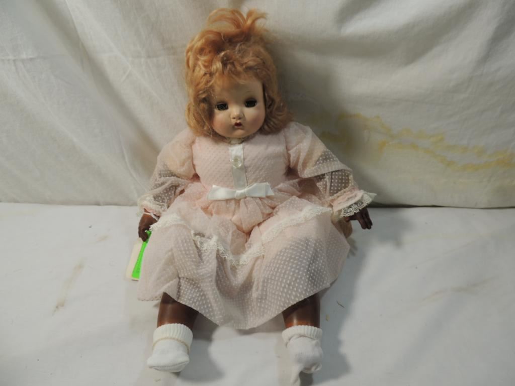MADAME ALEXANDER "DUMPLIN BABY" 22" CLOTH BODY VINYL LIMBS HARD PLASTIC HEAD. SLEEP EYES RED MOHAIR WIG. RARE. COLLECTIBLE AS SHOWN SEE PHOTO FOR MORE DETAILS.