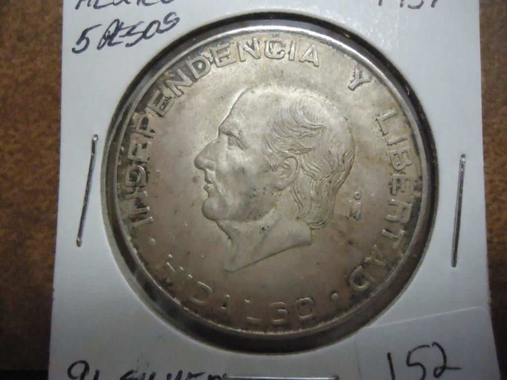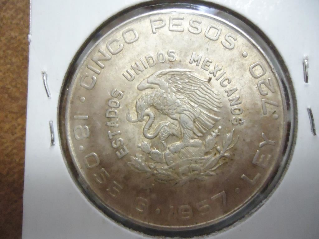 1957 MEXICO SILVER 5 PESO .4178 OZ. ASW