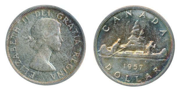 1957. One Water Line. ICCS Mint State-64. Light, highly attractive ‘P.Q.’ toning.