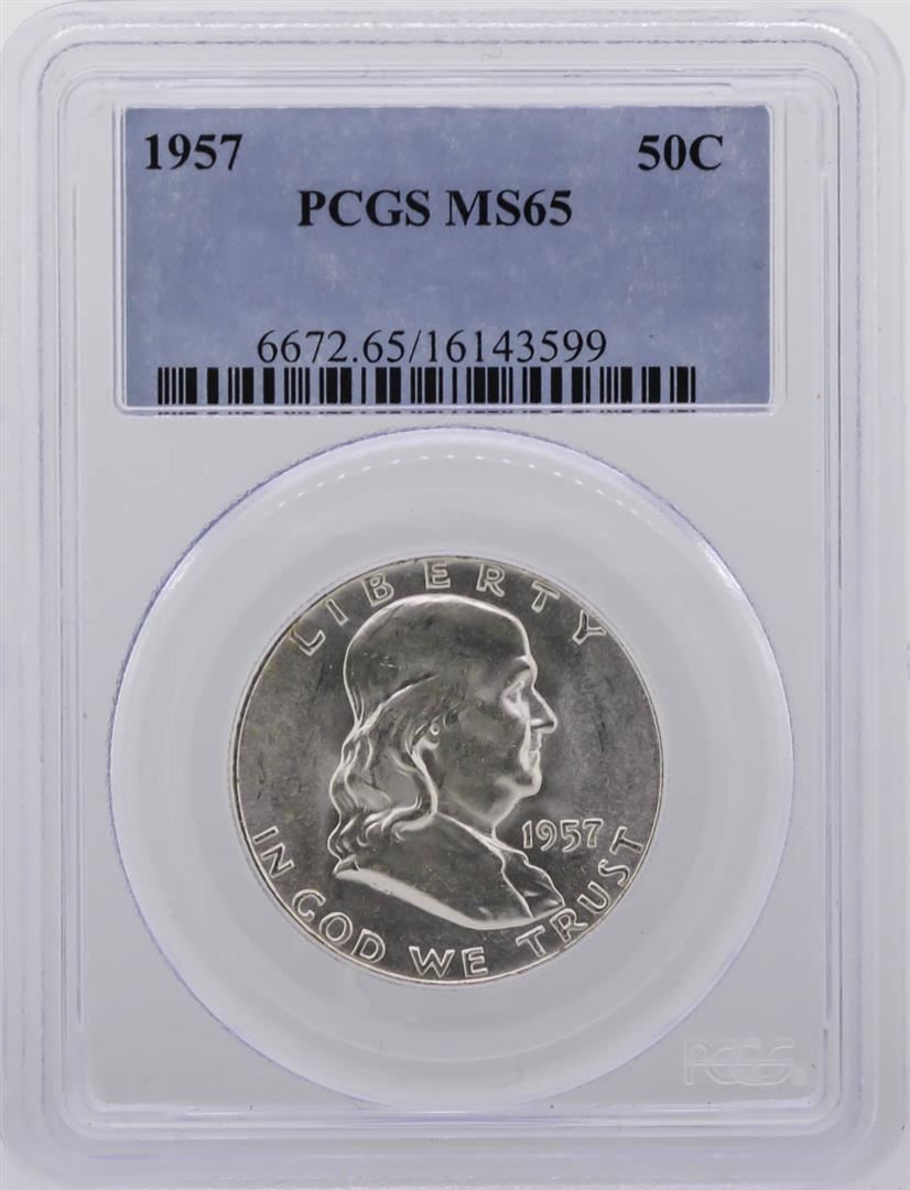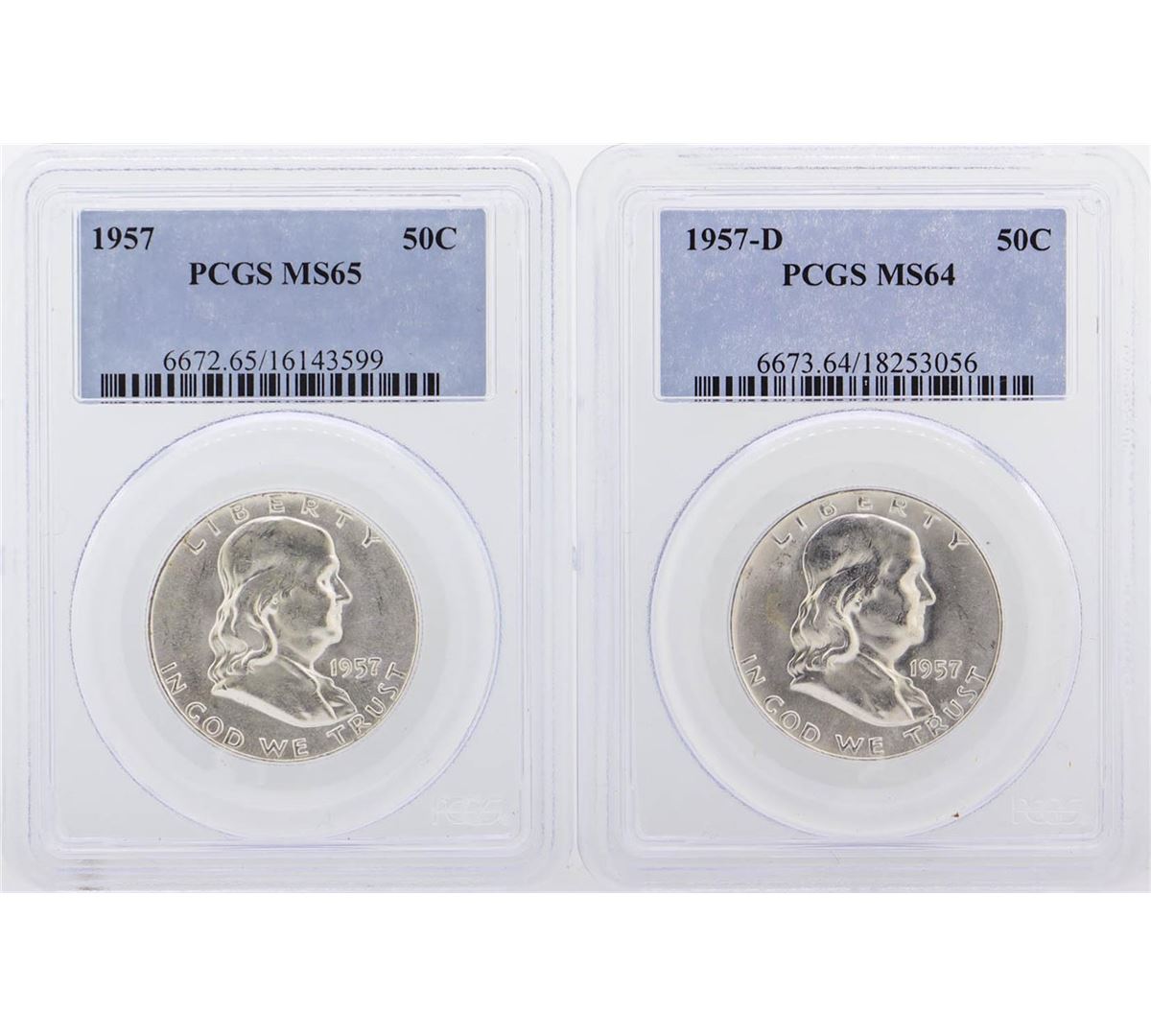 1957 PCGS MS65 & 1957-D PCGS MS64 Franklin Half Dollar Coin Set