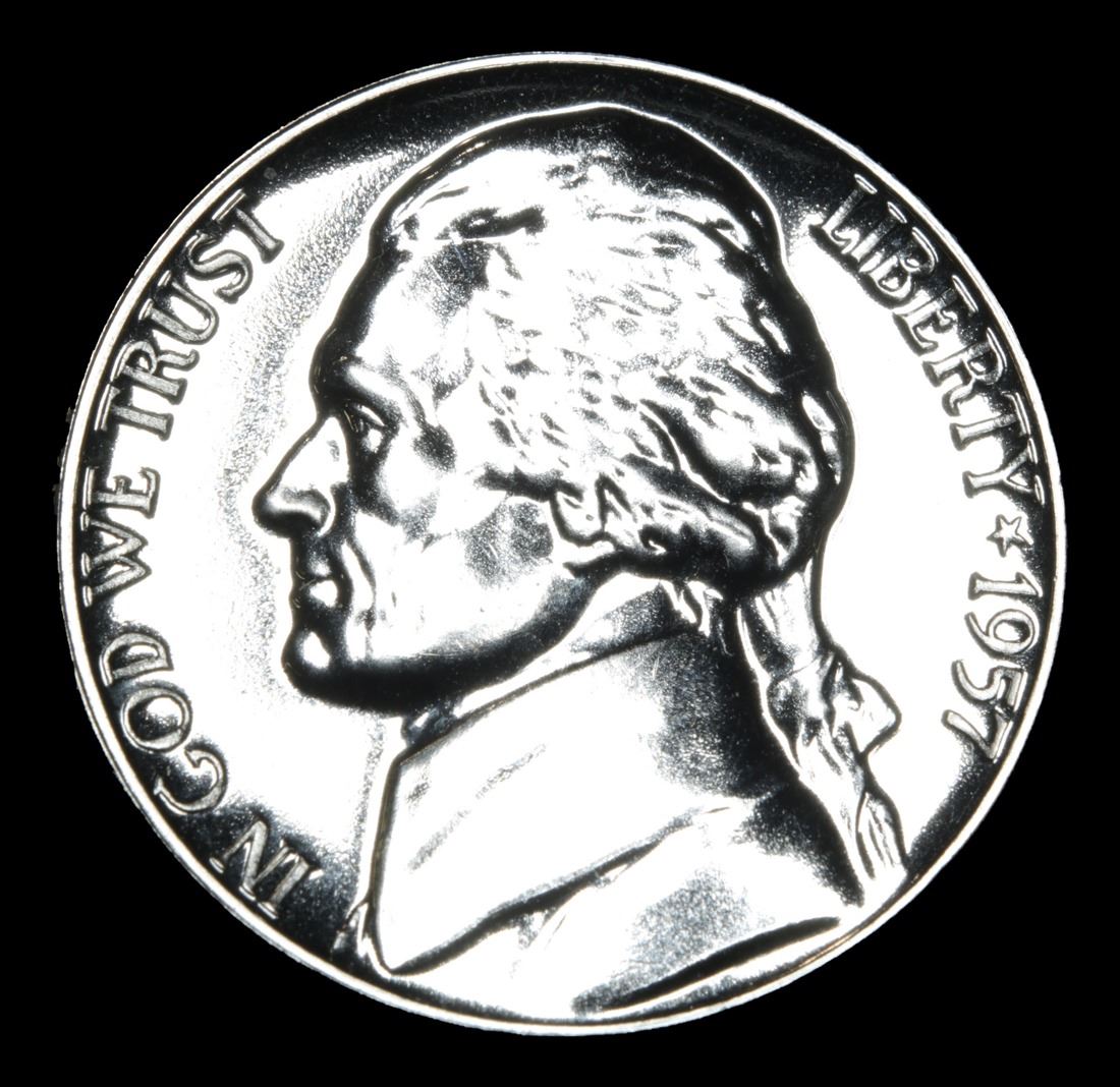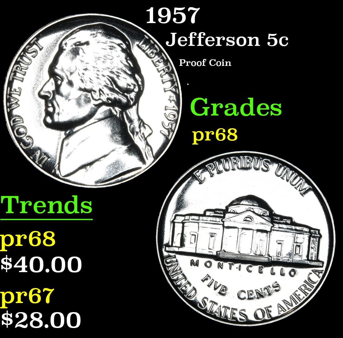 1957 Proof Coin . Jefferson Nickel 5c Grades GEM++ Proof.